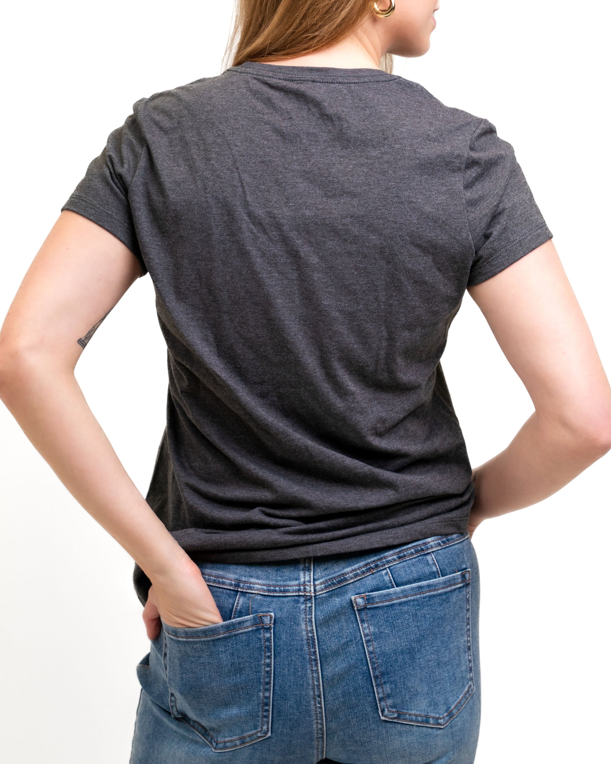 Experience a more feminine fit with our Redmond Charcoal Tee. Made from a soft cotton blend on a District tee, it offers a flattering shape and a shorter length compared to unisex styles. Featuring our mountain graphics with Redmond Oregon, this tee combines comfort with a stylish touch that's designed to support your everyday look.